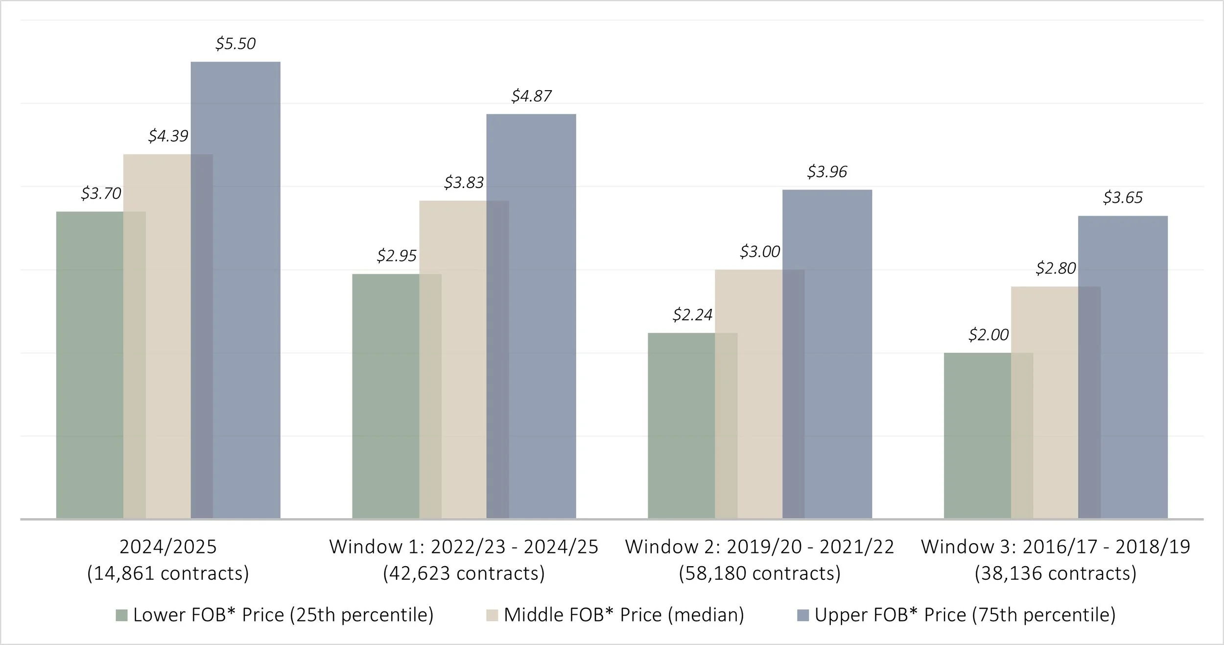 The current Transaction Guide focuses on data describing thousands of contracts from the last nine harvest seasons. These data are summarized as follows: